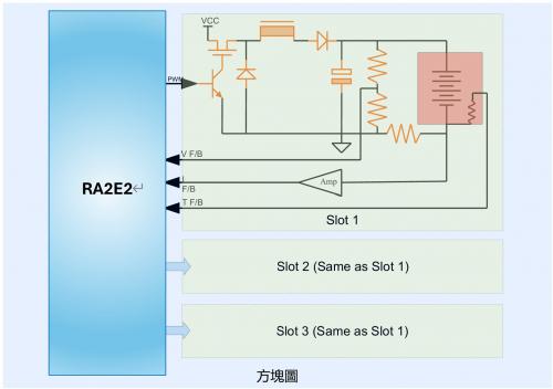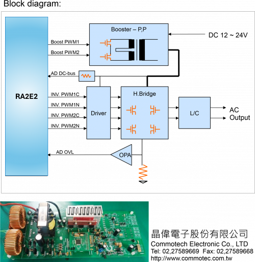 ▪單一微控器 RA2E2 整合昇壓與變頻功能,不需要額外PWM IC ▪零件少,成本低,維修容易 ▪硬體架構簡單,機種延伸容易